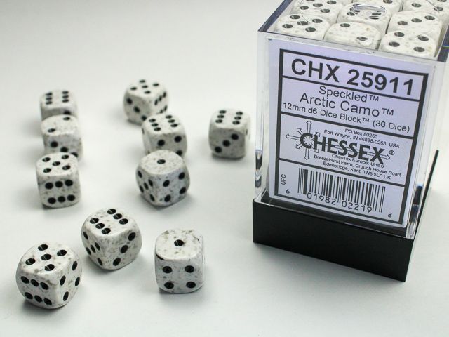 Back to catalogSpeckled® 12mm d6 Arctic Camo™ Dice Block™ (36 dice)$9.00In stock: 2 available Add More Add to BagGo to CheckoutSave this product for later Favorite Favorited View FavoritesShare this product with your friendsShareSharePin itSpeckled® 12mm d6 Arctic Camo™ Dice Block™ (36 dice)Product DetailsSpeckled® 12mm d6 Arctic Camo™ Dice Block™ (36 dice)Show MoreYou May Also LikeGemini® 12mm d6 Gold-Green/white Dice Block™ (36 dice)Gemini® 12mm d6 Gold-Green/white Dice Block™ (36 dice)$16.00 Buy NowTranslucent Polyhedral Clear/white 7-Die SetTranslucent Polyhedral Clear/white 7-Die Set$12.00 Buy NowSpeckled® 12mm d6 Air Dice Block™ (36 dice)Speckled® 12mm d6 Air Dice Block™ (36 dice)$9.00 Buy NowSpeckled® 12mm d6 Hurricane™ Dice Block™ (36 dice)Speckled® 12mm d6 Hurricane™ Dice Block™ (36 dice)$9.00 Buy NowOpaque 16mm d6 Black/red Dice Block™ (12 dice)Opaque 16mm d6 Black/red Dice Block™ (12 dice)$5.00 Buy Now